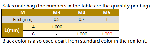 ◆If screw is used with a nut, we recommend using the screw and nut made of the same material.