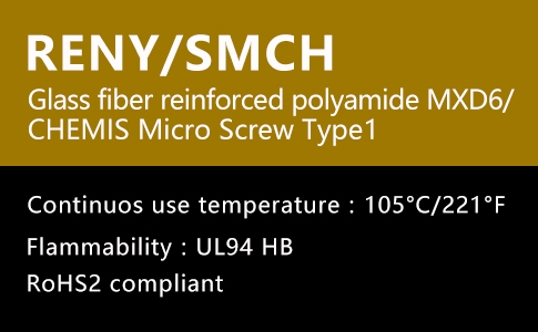 RENY is a crystalline engineering plastic re-inforced with 50% glass fiber with polyamide MXD6 as the base polymer.