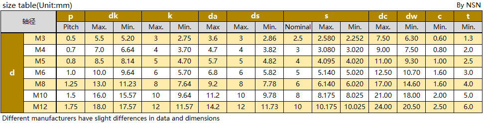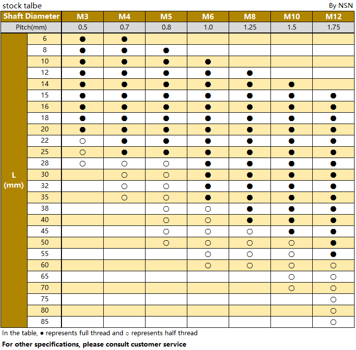 Supported specifications:M3 to M12 (standard inventory)
