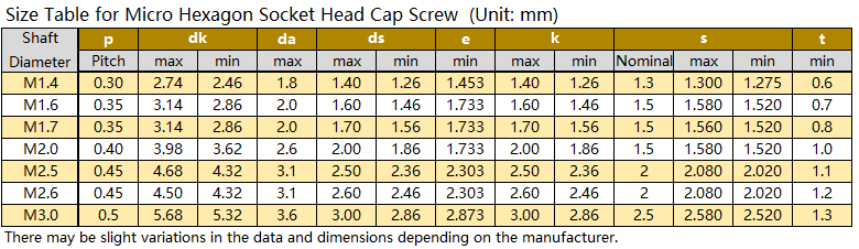 Micro hexagon socket head cap screw