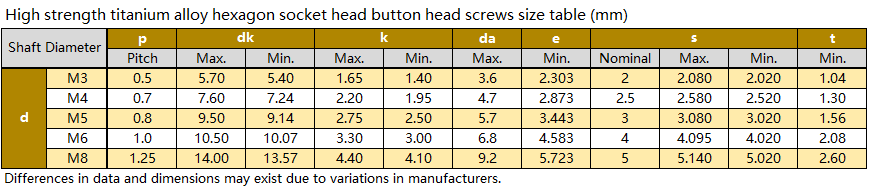 High strength titanium alloy hexagon socket button head screws