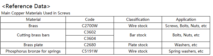 The representative brass grade is C2700, which is commonly used for small screws, bolts, hexagon socket screws, etc.