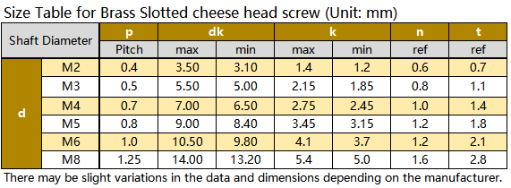 Brass Slotted cheese head screw