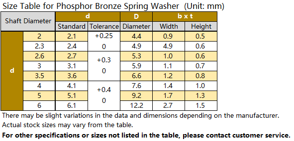 Phosphor bronze spring washer
