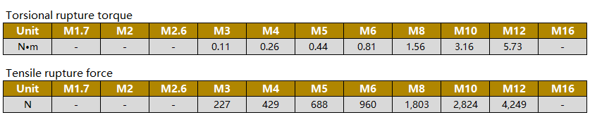 ◆Please use torque driver or torque wrench for fastening. Recommended fastening torque is 50% of the torsional rupture torque.