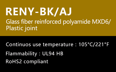 RENY is a crystalline engineering plastic re-inforced with 50% glass fiber with polyamide MXD6 as the base polymer.