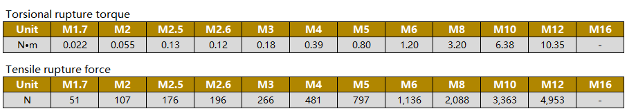 ◆Please use torque driver or torque wrench for fastening. Recommended fastening torque is 50% of the torsional rupture torque.